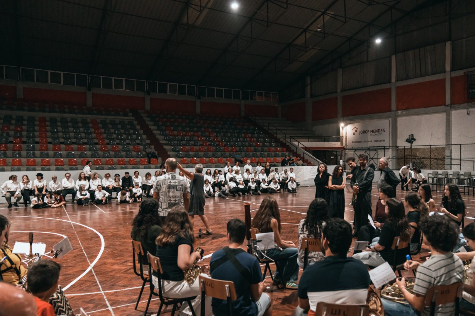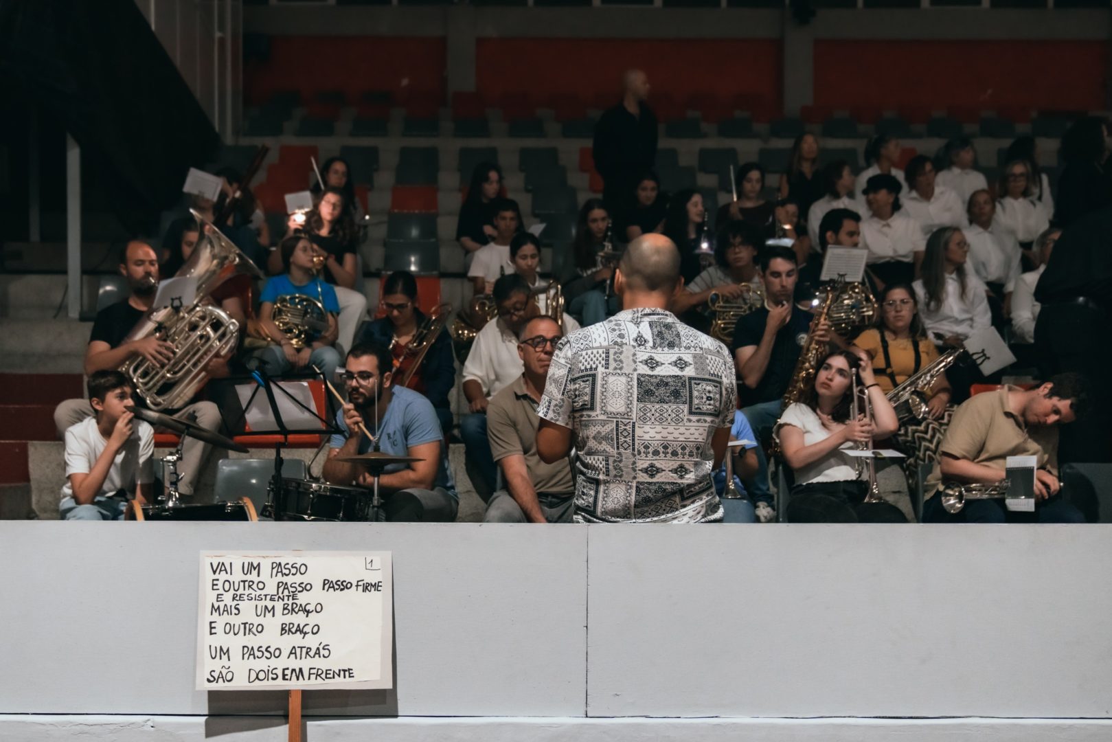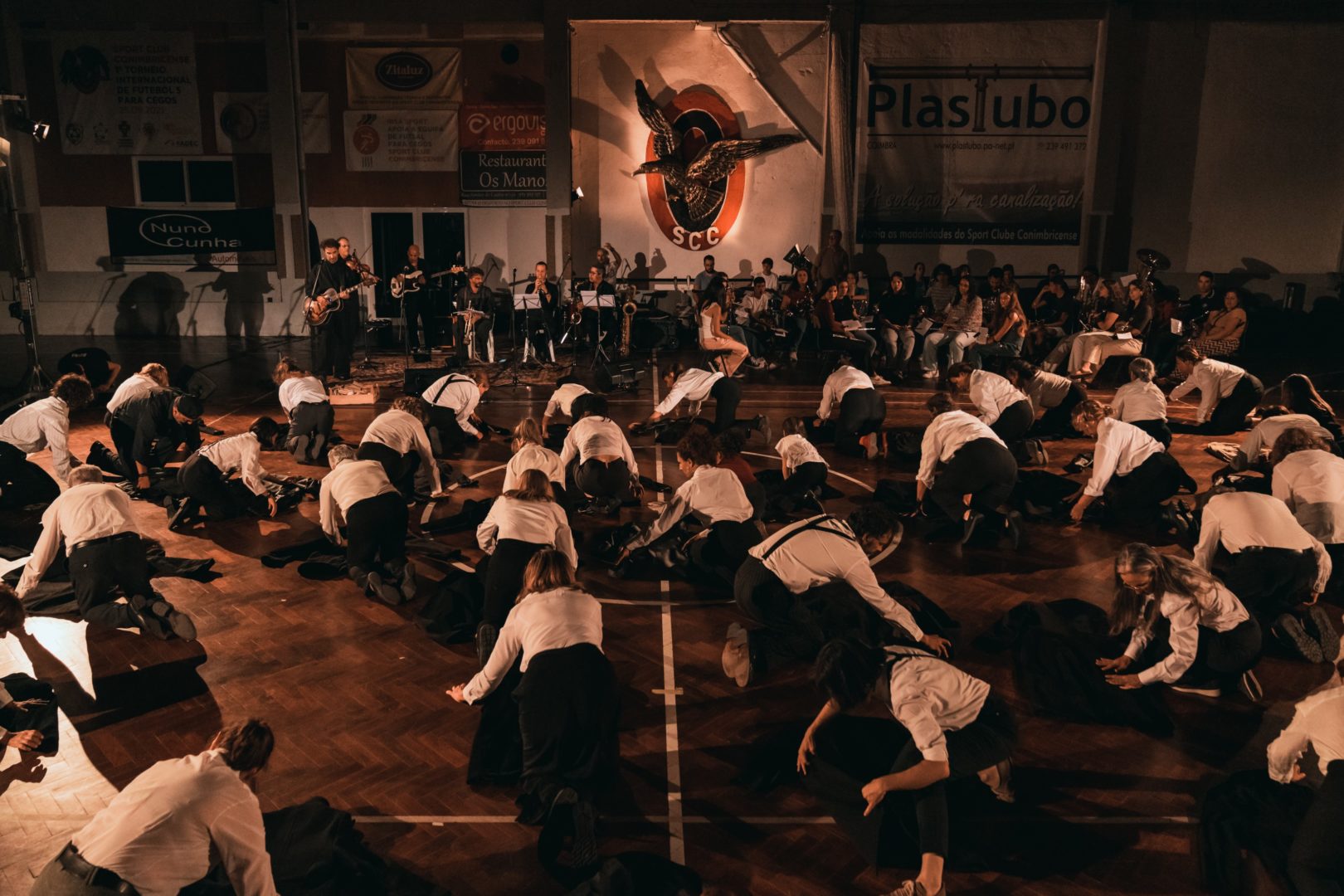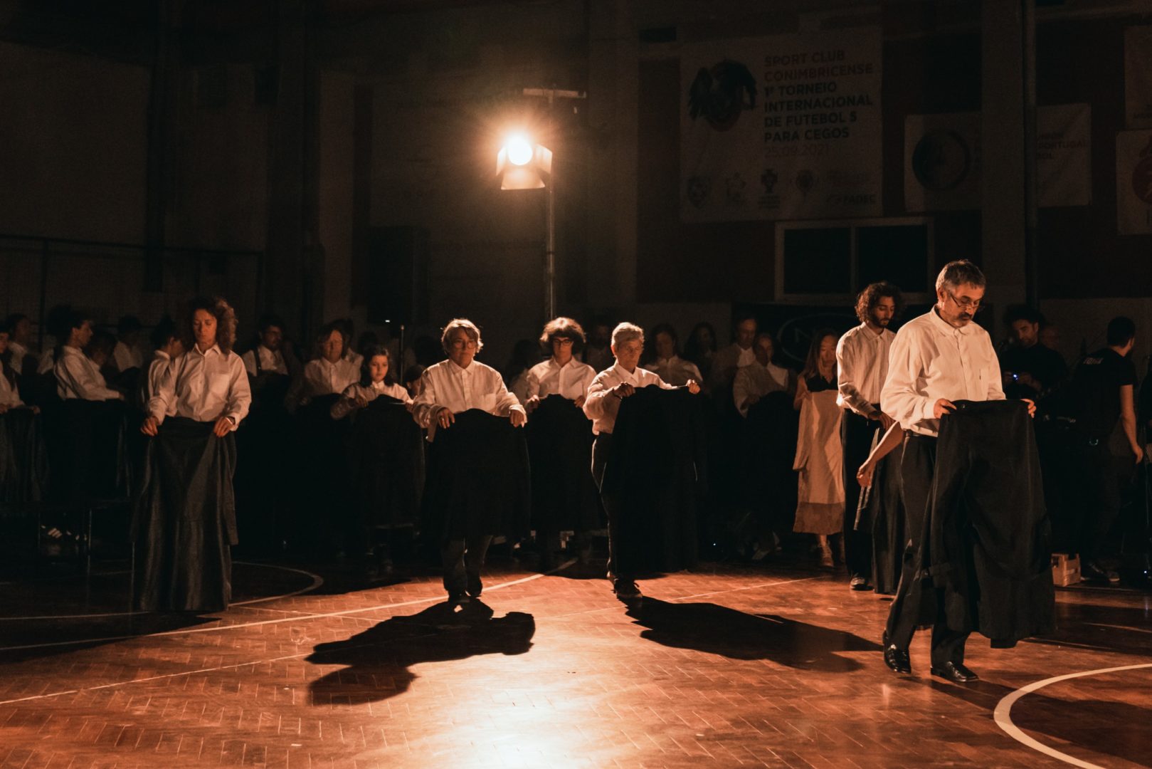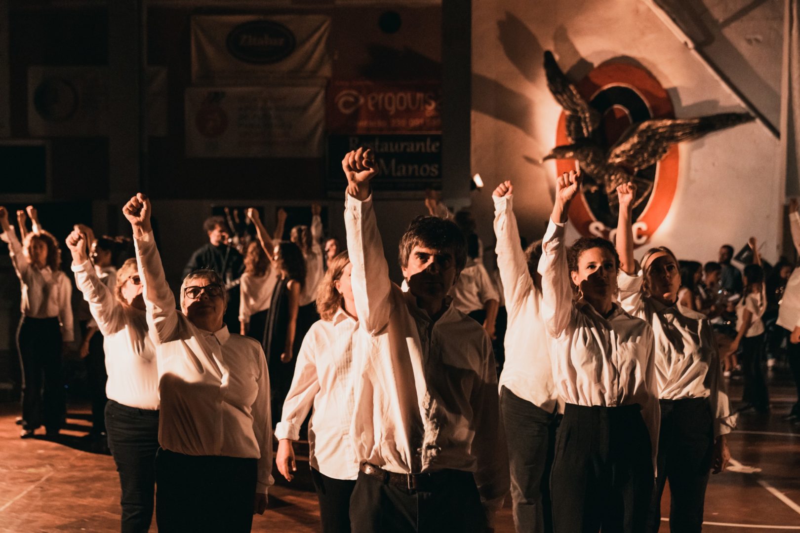 O espetáculo alia dança e música para recordar o antes, o durante e o depois do 25 de Abril, juntando mais de 100 pessoas em palco para falar de partilha, de vida coletiva, de luto e de luta. No caso do comício, o palco será o campo do pavilhão do Sport Club Conimbricense, muito usado no pós 25 de Abril para a realização de comícios de partidos de esquerda na cidade. Nele, encontram-se mais de 100 pessoas, entre músicos da Filarmónica de Miranda do Corvo, banda, população de Coimbra e bailarinos profissionais. Tanto há silêncio como alegria genuína, momentos soturnos e pesados como corpos que celebram e dançam despreocupados.