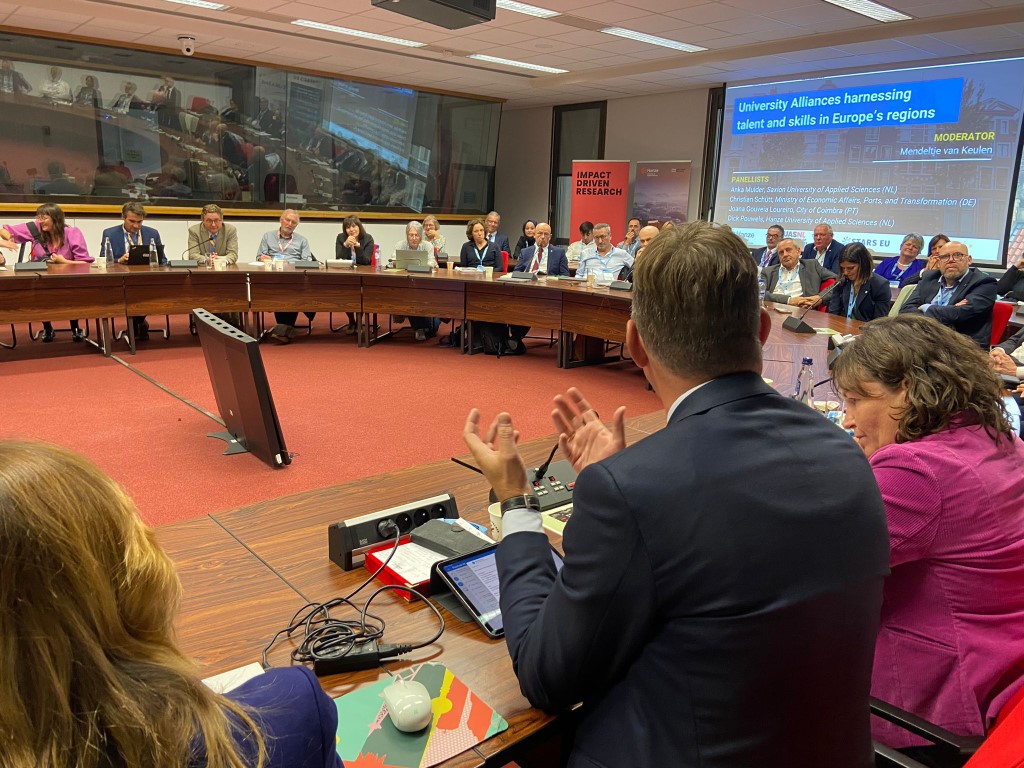 A intervenção de Coimbra sublinhou a importância da Iniciativa “Alianças Universitárias Europeias” para o futuro do ensino superior na Europa e para as cidades e territórios onde estão inseridas. Em Coimbra, existem duas Alianças Universitárias Europeias, que envolvem a Universidade de Coimbra e o Politécnico de Coimbra: a EC2U, “Campus Europeu de Cidades Universitárias”, e a UNIgreen, “Universidade Verde Europeia”.