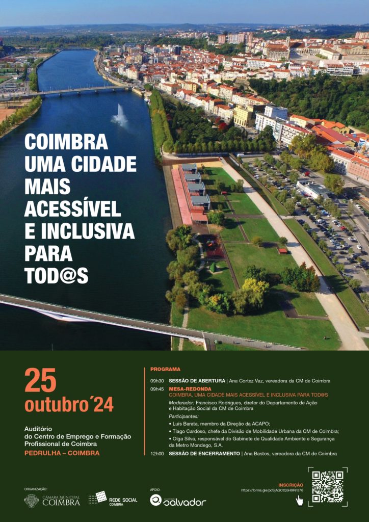 O objetivo desta iniciativa passa, essencialmente, por analisar o que já foi feito, o que está a ser feito e o que ainda falta fazer para tornar Coimbra mais acessível. “Coimbra, uma cidade mais acessível e inclusiva para tod@s” tem ainda a missão de consciencializar a sociedade para a importância da promoção das acessibilidades como um dos fatores preponderantes na inclusão social das pessoas.