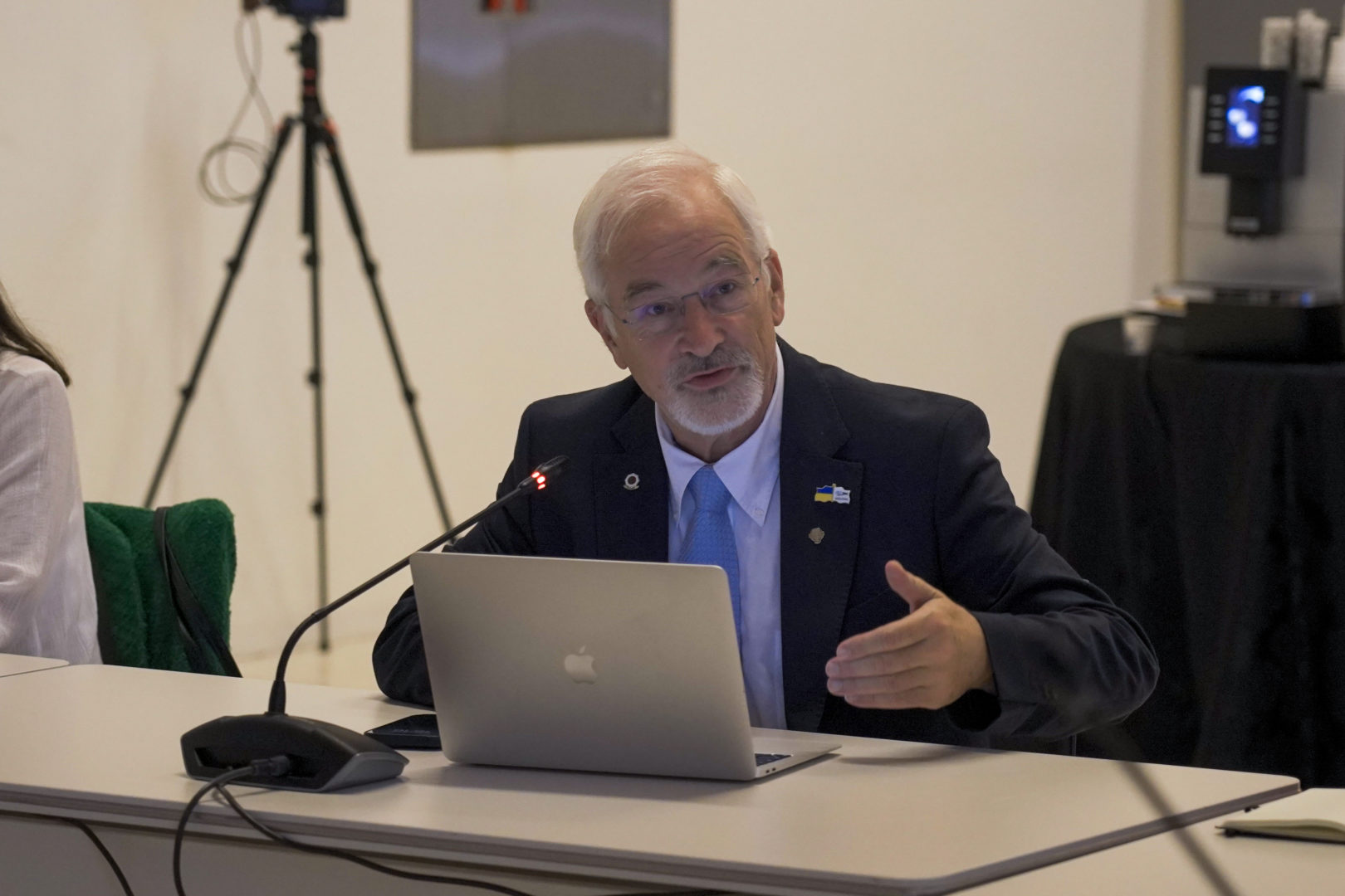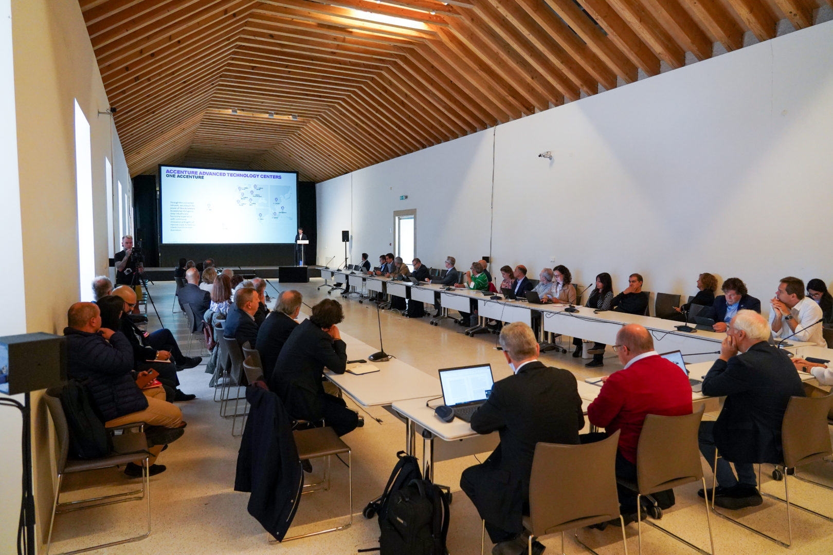 Hugo Portela, da Accenture, fez a primeira apresentação, na qual sublinhou os contributos da CM de Coimbra para a instalação do Advanced Technology Center de Coimbra, em março de 2023. “Coimbra tem sido uma aposta ganha e estamos mais uma vez agradecidos à CM de Coimbra e a toda a sua equipa, que teve sempre uma enorme disponibilidade”, nomeadamente na escolha de um local para a instalação deste centro. Hugo Portela sublinhou ainda o valor das instituições de ensino da cidade para a formação de recursos humanos. “As pessoas são o nosso ativo principal: sem pessoas não fazemos projetos, e queremos, por isso, que tenham um futuro promissor”. A Accenture emprega hoje 160 pessoas em Coimbra, com 84 % das contratações efetuadas na cidade.