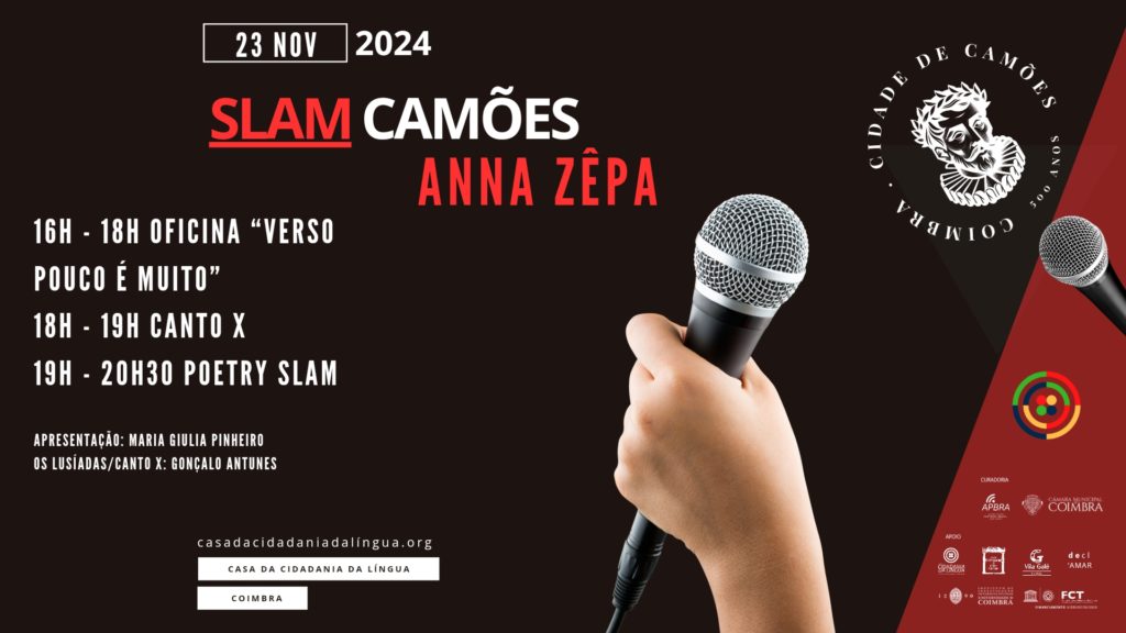 O “Slam Camões” é uma iniciativa promovida pela Associação Portugal Brasil 200 anos, em parceria com Câmara Municipal de Coimbra e o Centro Interuniversitário de Estudos Camonianos da Universidade de Coimbra, para celebrar o legado de Luís Vaz de Camões.