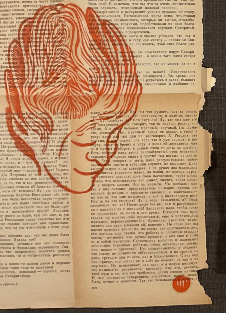 Os elementos visuais são impressos, manualmente, em páginas de um único livro que conferiu o nome à série “Cyrillic Stories”. A escolha de “Crime e Castigo”, de Dostoiévski, não se baseou no facto de este ser um clássico da literatura, mas sim no potencial gráfico do alfabeto cirílico e da sua capacidade de, por ser menos percecionado no seu significado, poder associar livremente a linogravura a uma história, a uma narrativa ilustrada.