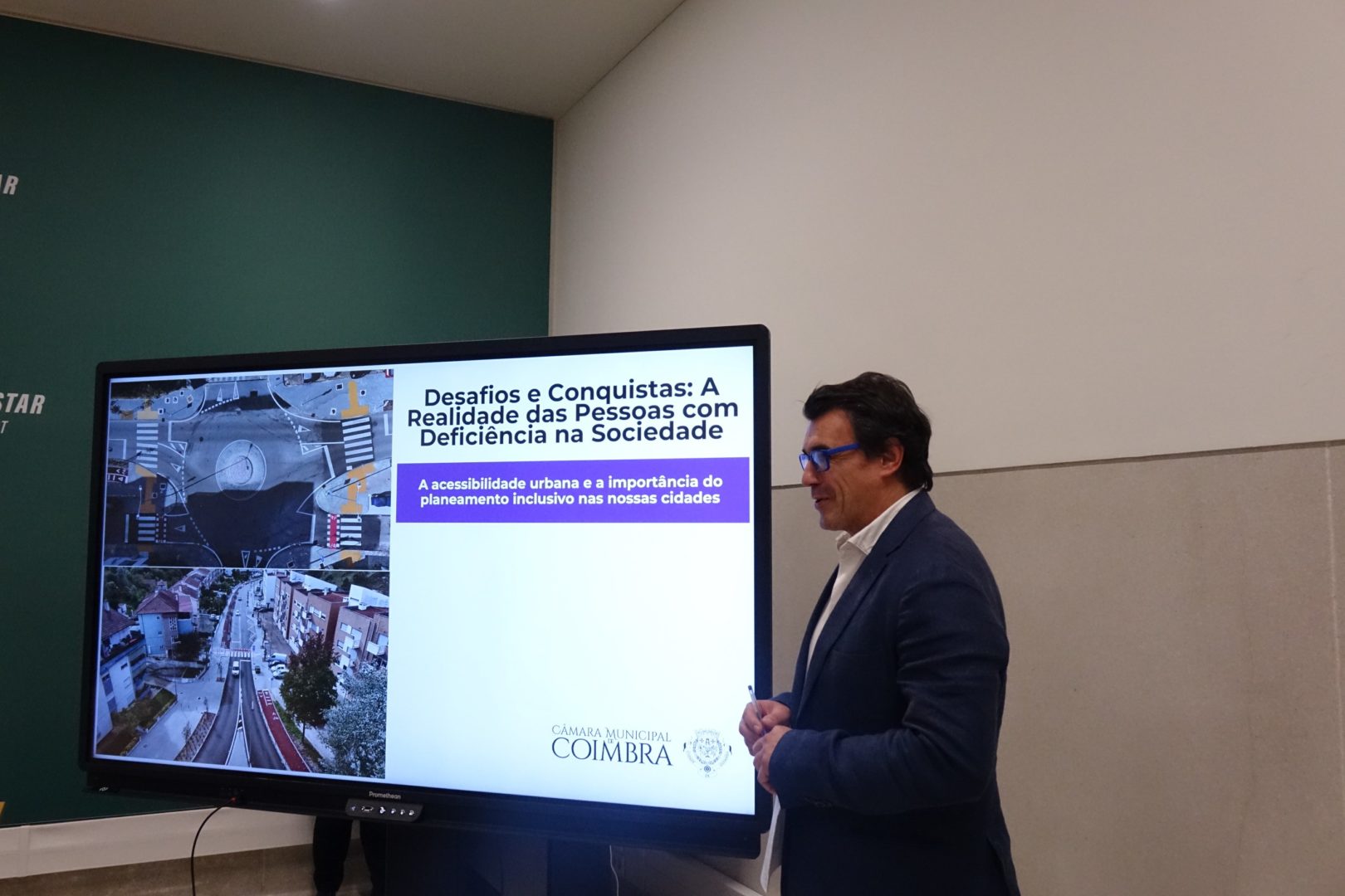 O encontro “Desafios e Conquistas: A Realidade das Pessoas com Deficiência na Sociedade” teve a participação de Fernando Fontes, investigador do Centro de Estudos Sociais (CES) e membro do Conselho Consultivo do Observatório da Deficiência e Direitos Humanos, que abordou a importância da pesquisa e das políticas públicas para a inclusão; de Catarina Vitorino, ativista e membro da direção do Centro de Vida Independente, que falou das suas experiências e dos desafios enfrentados por pessoas com deficiência em busca de autonomia e direitos; e de Miguel Santos Costa, diretor de Departamento de Espaço Público da CM de Coimbra, que abordou o tema da acessibilidade em espaço urbano e a importância do planeamento inclusivo das cidades.