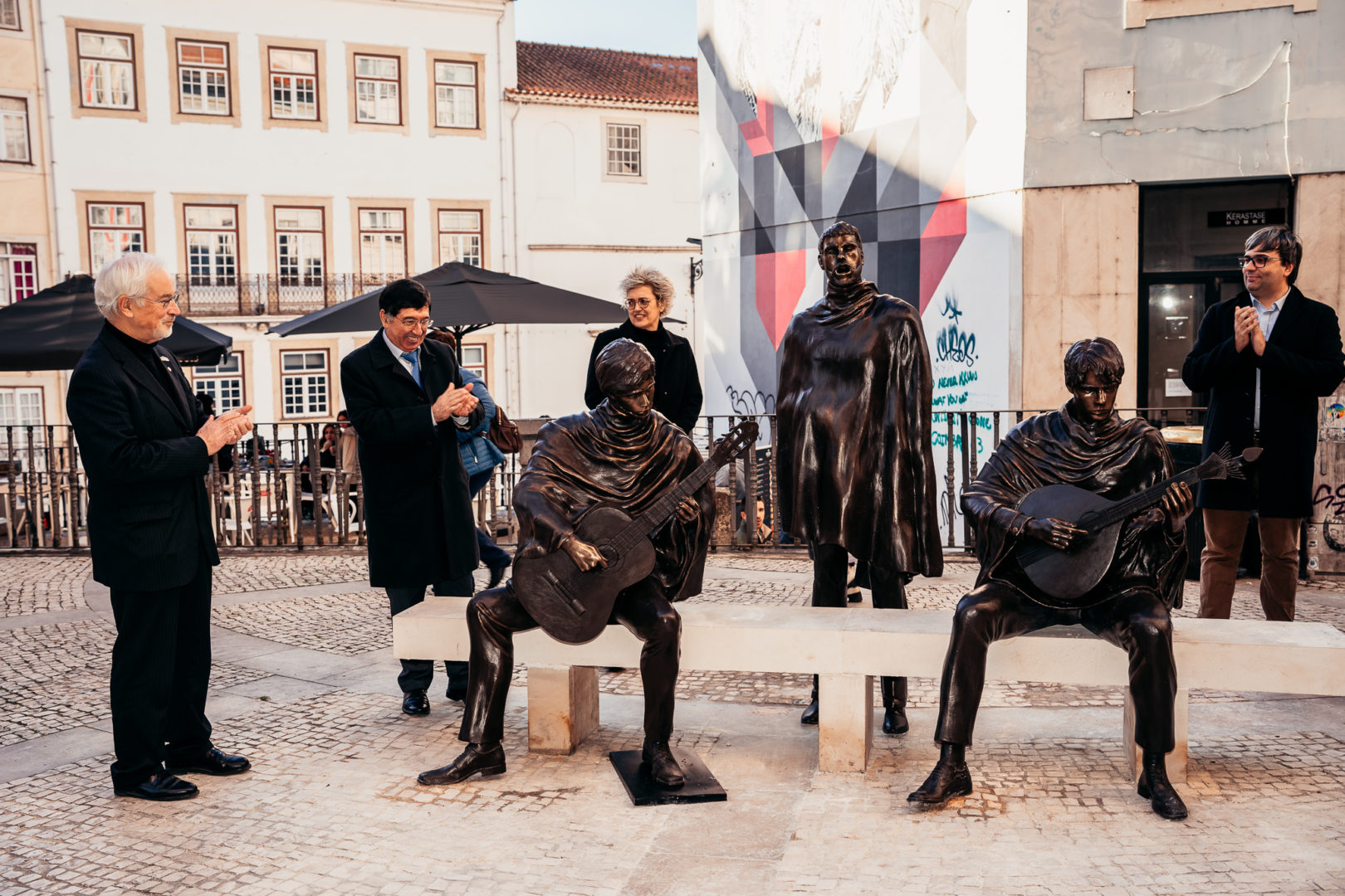 A autarquia considera necessário manter viva a tradição de cantares de estudantes nas ruas de Coimbra, que faz parte da cultura imaterial da cidade e que constitui uma marca identitária do território. Para tal, a CM de Coimbra decidiu encomendar uma peça escultórica de homenagem ao Fado de Coimbra, para ser instalada numa zona nobre de cidade. O local de implantação da escultura foi na Rua Ferreira Borges, no largo em frente ao Arco de Almedina, um local de grande passagem de turistas e munícipes. “Cantares de Coimbra” foi inaugurada no sábado, dia 21 de dezembro, na presença do presidente da CM de Coimbra, José Manuel Silva, e da autora Dora Tracana.