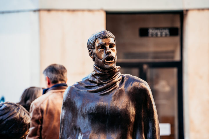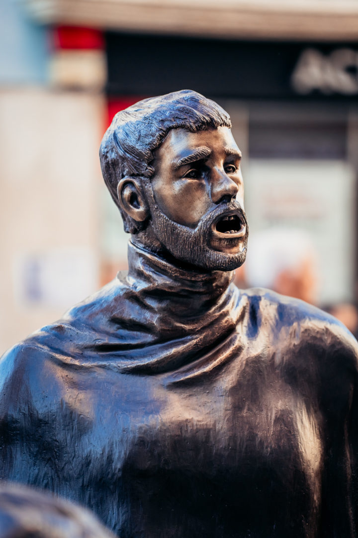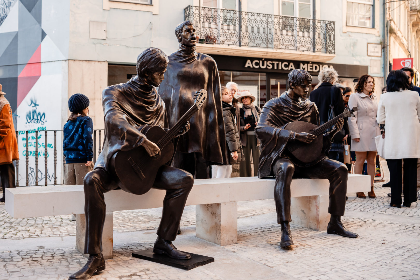 Desde o séc. XVI que o cantar de estudantes nas ruas de Coimbra é factualmente conhecido, onde o erudito e o popular se reviam e misturavam com frequência. No entanto, as memórias do Fado de rua vão-se perdendo e a CM de Coimbra pretende contrariar essa tendência com esta escultura da autoria de Dora Tracana.