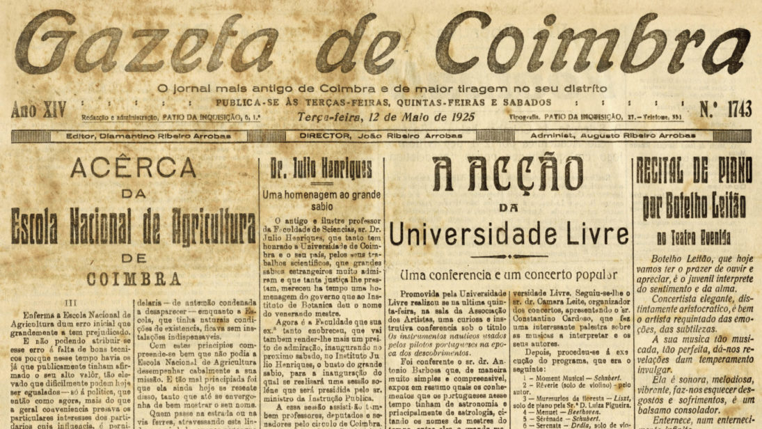 Na próxima quarta-feira, dia 5 de fevereiro, assinalam-se os 100 anos da fundação da Universidade Livre de Coimbra. Para assinalar a efeméride, o Museu Municipal vai expor na Galeria Almedina do Museu Municipal a exposição “No Centenário da Universidade Livre de Coimbra 1925 – 2025”, organizada pelo GAAC. Pelas 16h30, a cerimónia de inauguração vai contar com a presença do presidente da Câmara Municipal (CM) de Coimbra, José Manuel Silva, do vice-presidente da CM de Coimbra, Francisco Veiga, e do presidente do GAAC, Valdemar Rosas.