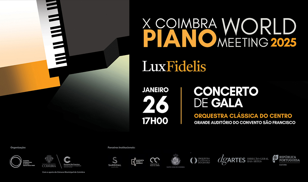 A 10ª edição do Coimbra World Piano Meeting traz à cidade jovens pianistas e professores de grandes instituições mundiais, oriundos de 20 países. O Concerto de Gala do X Coimbra World Piano Meeting 2025 vai juntar, no próximo domingo, no Convento São Francisco, jovens pianistas premiados e a Orquestra Clássica do Centro, para interpretarem obras de Beethoven, de Mozart e de Saint-Saëns. O concerto é organizado, à semelhança das edições anteriores, pela Câmara Municipal de Coimbra e pela Orquestra do Clássica do Centro.