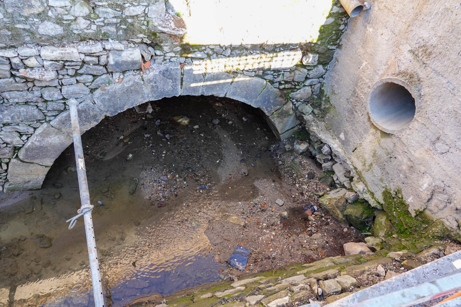 Esta estrutura em pedra calcária encontra-se assoreada até ao arranque da abóbada, impedindo a leitura do aparelho de construção, designadamente a parte do embasamento da mesma. Para obtenção de elementos que permitam inferir uma cronologia para a sua construção, são necessários trabalhos complementares, que passam pelo estudo das marcas de canteiro e pelo desassoreamento da estrutura. Tudo aponta para que a ponte medieval identificada corresponda à antiga Ponte do Padrão.