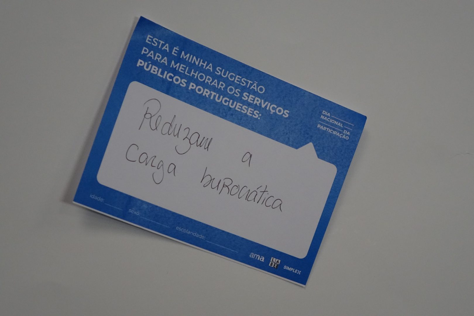 A iniciativa do Dia Nacional da Participação teve como objetivos auscultar as pessoas diretamente, através da aplicação de questionários, a participação num “Mural de Sugestões” e a divulgação da iniciativa SIMPLEX no portal Participa.gov.pt, em que qualquer cidadão pode submeter as suas sugestões de melhoria dos serviços públicos.