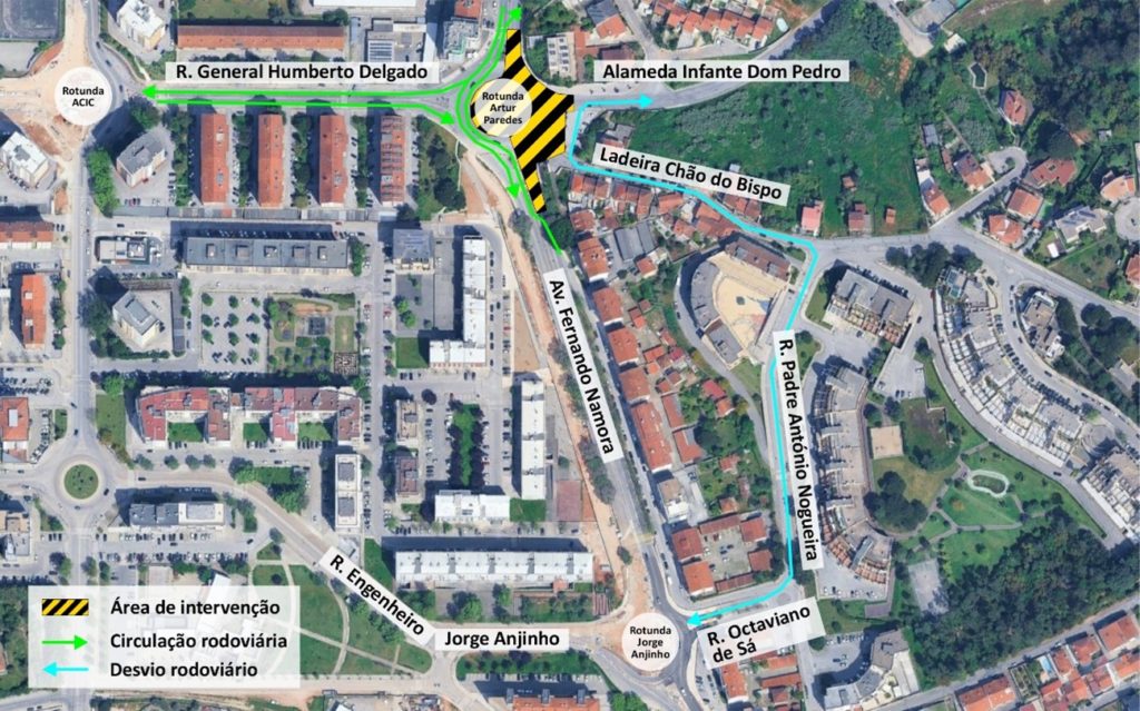 - O acesso à Alameda Infante Dom Pedro pela Rotunda Artur Paredes ficará temporariamente interrompido. Como alternativa deve ser utilizada a Ladeira do Chão do Bispo (com circulação provisória nos dois sentidos) e a Rua Padre António Nogueira;