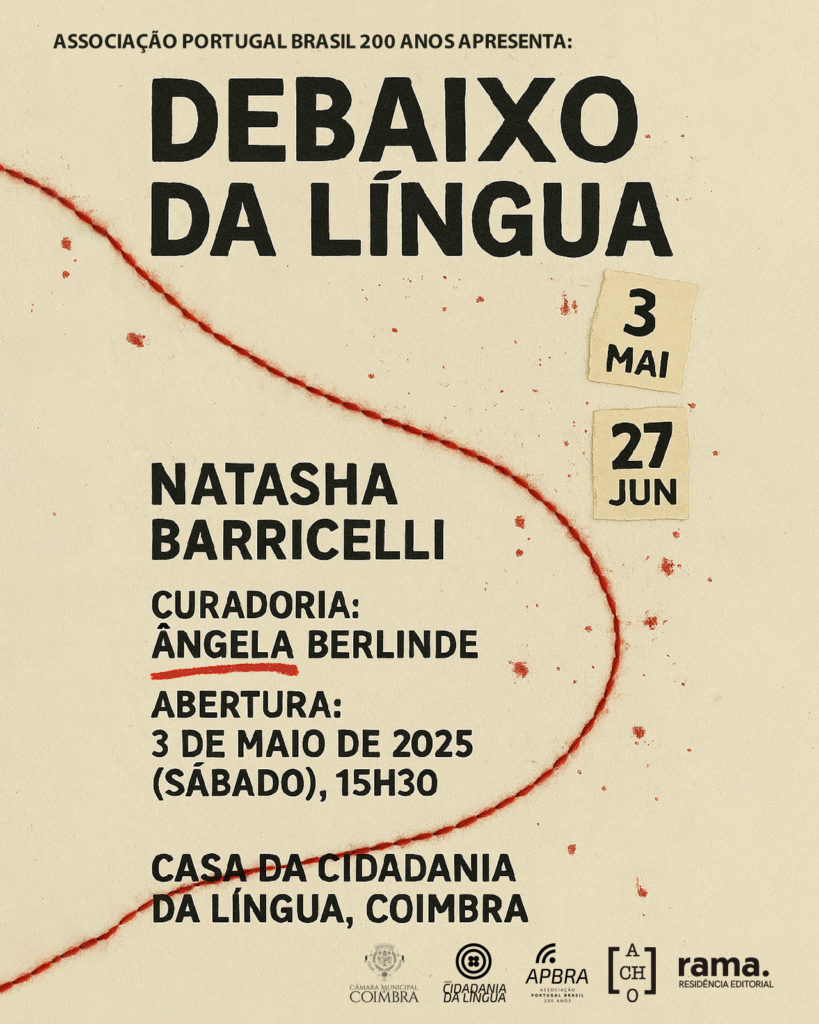 “Debaixo da Língua” resulta de uma residência artística desenvolvida em Coimbra e propõe uma instalação imersiva onde literatura e artes visuais se entrelaçam, transformando a língua portuguesa em matéria viva, sensorial e poética. Utilizando costuras, dobras e linhas, Natasha Barricelli redesenha memórias e territórios, convidando o público a habitar as palavras.