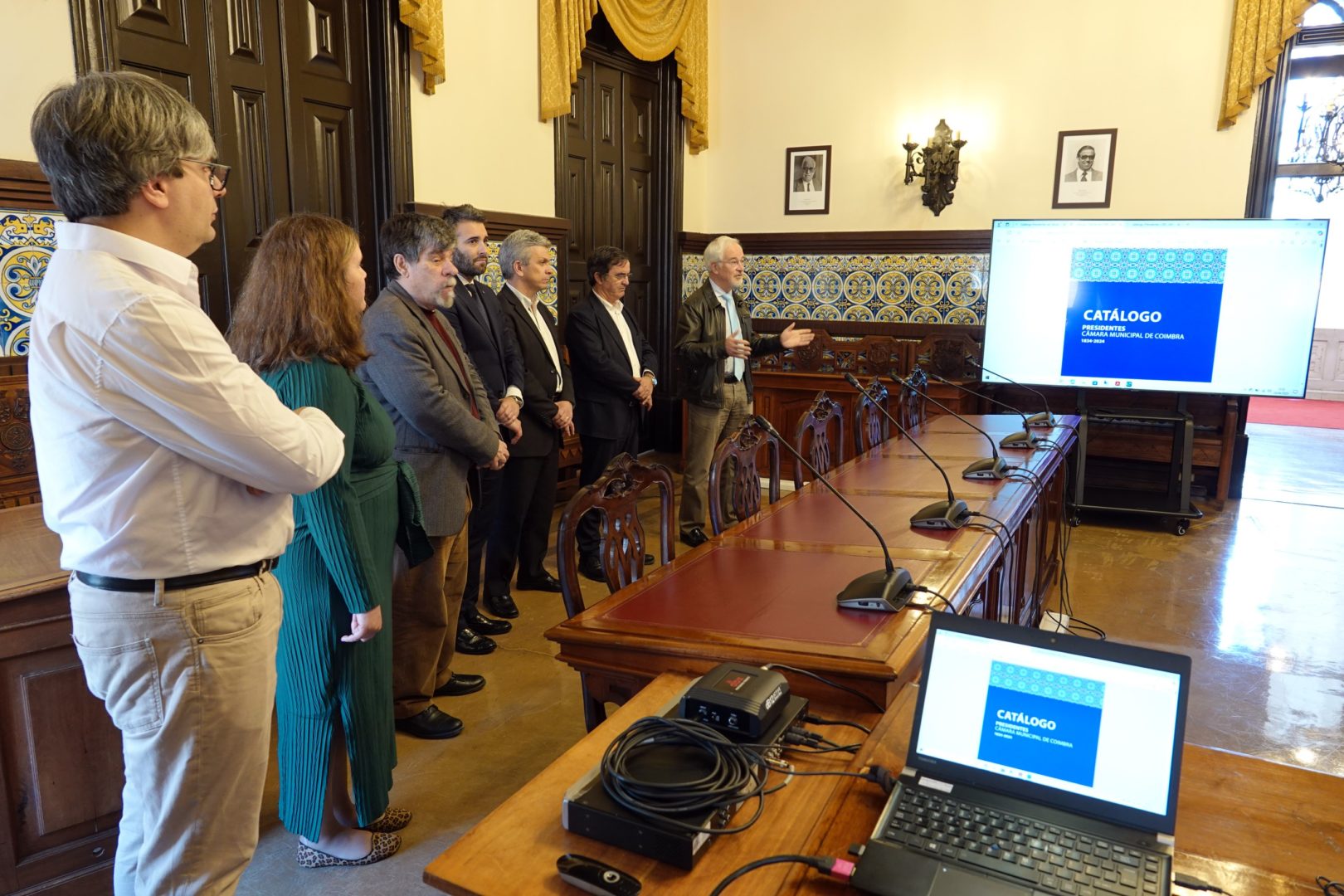 A sessão de apresentação do catálogo digital decorreu nos Paços do Concelho e contou com a presença do atual presidente, José Manuel Silva, e foi assegurada por Pedro Peixoto, do Gabinete de Apoio à Presidência. O catálogo surge no seguimento da inauguração da galeria de presidentes, realizada a 5 de outubro de 2024, no âmbito das comemorações dos 190 anos da eleição do primeiro presidente do município.