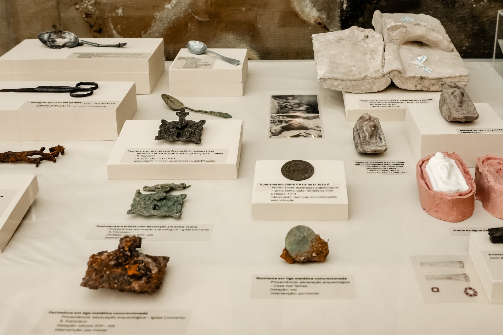 Está patente, no átrio dos Paços do Concelho de Coimbra, uma exposição promovida pelo Gabinete de Arqueologia da CM de Coimbra, que reúne 20 objetos arqueológicos alvo de intervenção pela equipa de conservação e restauro. As peças, provenientes de contextos arqueológicos diversos, encontram-se em diferentes fases de tratamento, desde a descoberta in situ até à sua preparação para exibição museológica.
