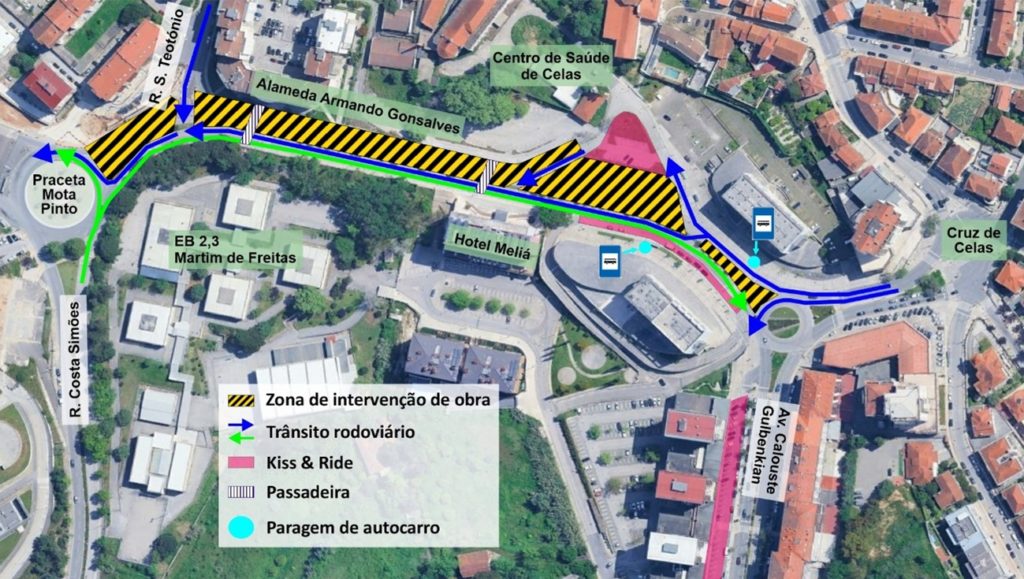 O acesso da Alameda Armando Gonsalves à Rua São Teotónio ficará temporariamente interrompido, sendo reaberto logo que a evolução dos trabalhos o permita, garantindo sempre a segurança e o bom andamento da intervenção.