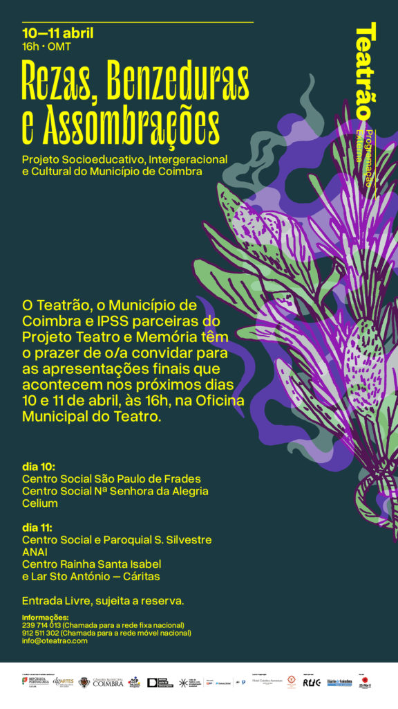 Neste ciclo do projeto “Teatro e Memória”, a companhia O Teatrão propôs trazer cenas repletas de “Rezas, Benzeduras e Assombrações”. Os protagonistas são idosos que interpretam cenas que evocam o imaginário popular, com narrativas sobre rezas, crenças, lendas, fenómenos naturais e objetos extraordinários. O espetáculo parte de histórias, memórias e tradições orais recolhidas ao longo de sessões de trabalho com os participantes.