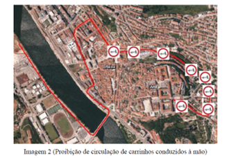 Para segurança de participantes e espectadores, o estacionamento automóvel será proibido entre as 0h00 de sábado, dia 24, e as 22h00 de domingo, dia 25, nos seguintes locais: Largo da Feira, Largo Marquês de Pombal, Rua dos Estudos, Largo D. Dinis, Calçada Martim de Freitas, Praça João Paulo II (Arcos do Jardim), Rua Alexandre Herculano e Praça da República.