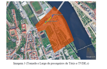 - Táxis: faixa lateral junto à Praça das Cortes, antes da rotunda (sentido Ponte de Santa Clara – Av. João das Regras).