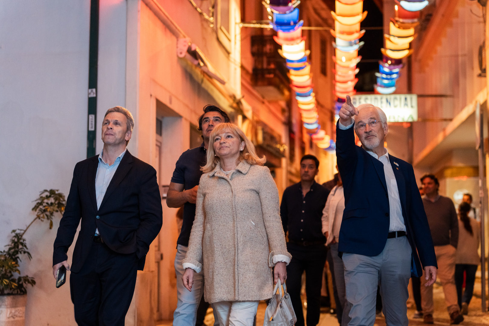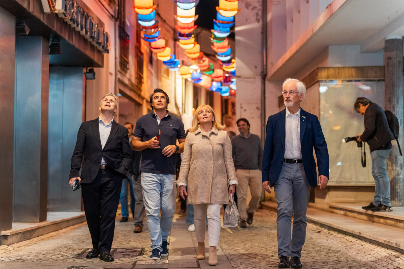 A cerimónia oficial de ligação das luzes que iluminam centenas de cartolas universitárias na Rua Adelino Veiga decorreu ontem, 21 de maio. A iniciativa contou com a presença do presidente da autarquia, José Manuel Silva, da vereadora responsável pela Reabilitação Urbana, Ana Bastos, do vereador do Comércio e Indústria, Miguel Fonseca, bem como dos serviços municipais envolvidos e da empresa responsável pelo projeto.