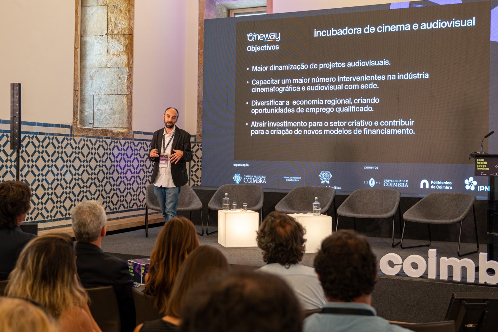 “Coimbra tinha já em si tudo o que era necessário para criar a primeira incubadora de cinema do país: as pessoas, o know how, o património, o investimento na área do cinema e mesmo os espaços para acolher estas entidades”, afirmou hoje o presidente da CM de Coimbra. “A certificação oficial da Cineway por parte da Start Up Portugal vem apenas confirmar o trabalho conjunto e contínuo que tem sido desenvolvido por várias instituições e abrir caminho a mais um cluster na cidade, no qual também queremos ser referência internacional: o cluster do Cinema”, sublinhou José Manuel Silva.
