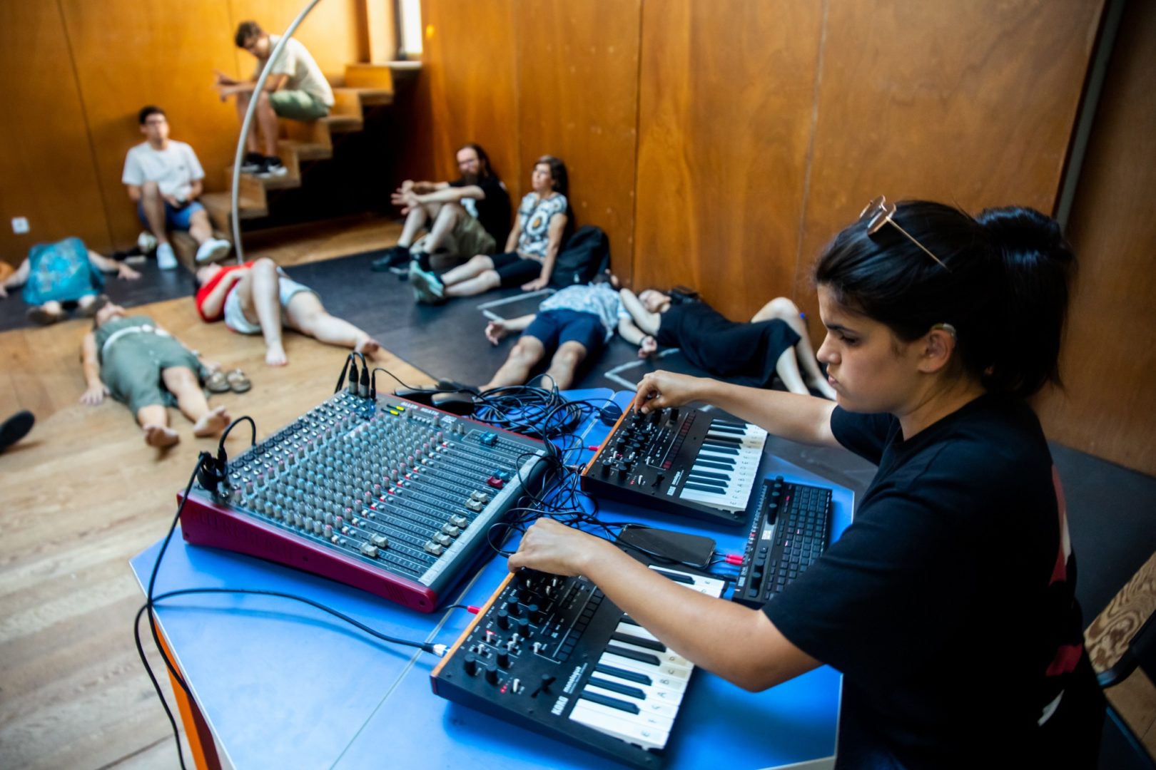 O Dar a Ouvir tem vindo, ao longo das edições mais recentes, a interrogar não apenas o que escutamos, mas como e quem escutamos — num esforço de ampliar o alcance da nossa perceção. Neste contexto, a edição de 2025 começou já em junho, com uma oficina conduzida por Beatriz Romano, jovem artista sonora de 21 anos, com perda auditiva severa diagnosticada na infância. Através do uso de coletes hápticos e sintetizadores analógicos, Beatriz convidou alunos da EB 2/3 Poeta Manuel da Silva Gaio (Escola de Referência para a Educação Bilingue de Alunos Surdos) a experimentar o som com o corpo, devolvendo à vibração e à escuta tátil um lugar central na experiência sonora. A atividade reforçou a missão do ciclo: ouvir também os corpos historicamente excluídos, e questionar as formas como escutamos, nos relacionamos e compreendemos o mundo.