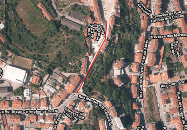 Na imagem, a vermelho as vias cortadas ao trânsito e a verde o local da serenata: