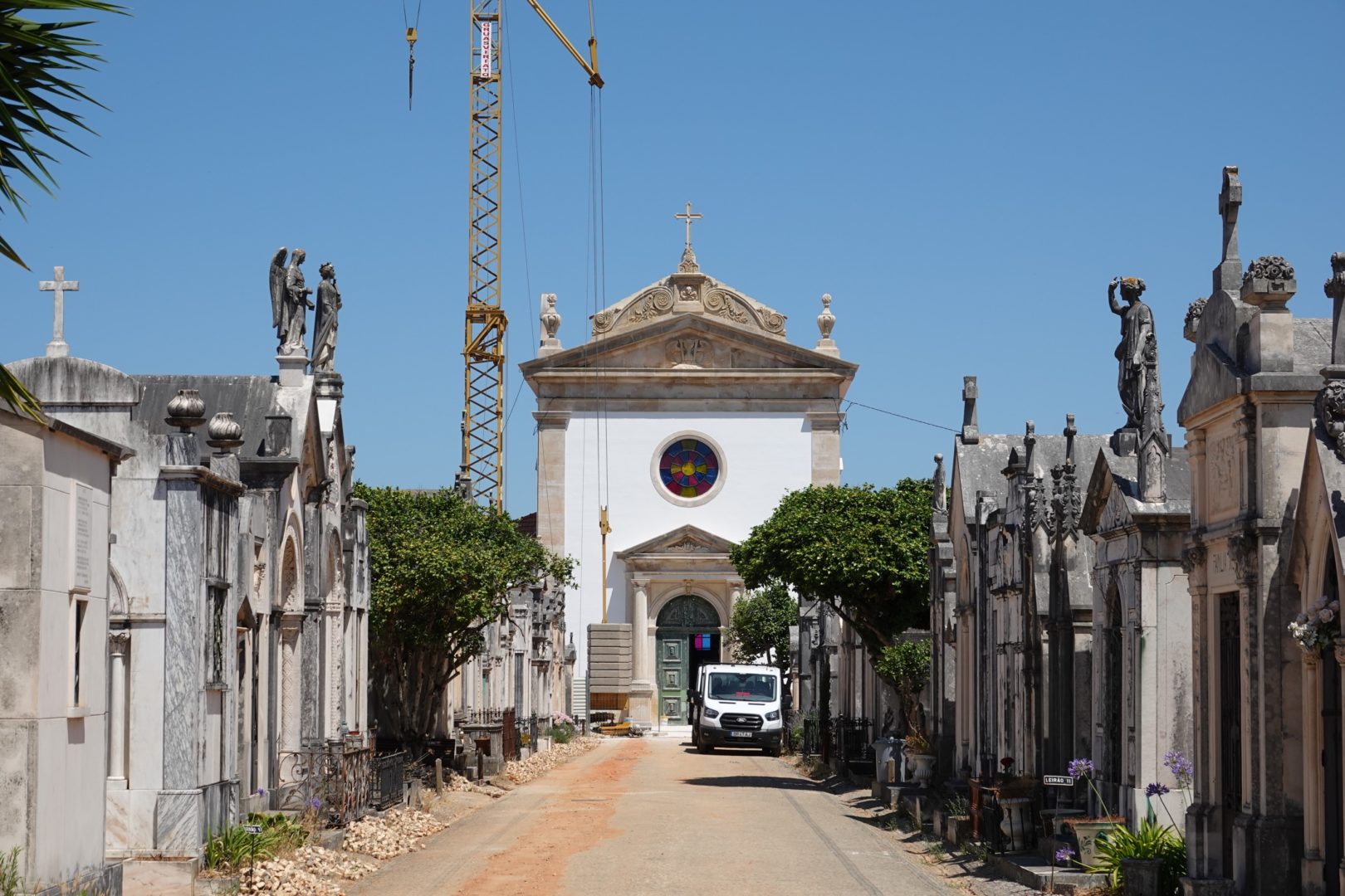 “Está a ficar com um aspeto lindíssimo”, afirma o autarca, recordando o estado em que se encontrava o edifício, sobretudo o interior do columbário, que era “absolutamente indigno” para acomodar as ossadas. “Estavam aqui cerca de 1.500 urnas de diferentes tamanhos e ossários em condições muito precárias, em risco de queda”, sublinha, apontando razões que mais do que justificam esta obra “extremamente importante e impactante em termos emocionais”.
