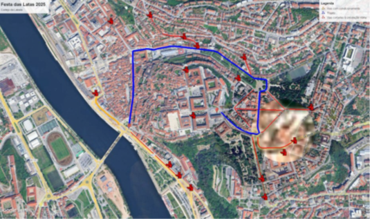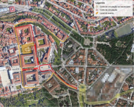 Para a realização do Cortejo, domingo, a partir das 14h00, vai haver corte de trânsito na Rua Larga, Largo D. Dinis, Rua Martim de Freitas, Praça João Paulo II, Rua Alexandre Herculano, Praça da República, Avenida Sá da Bandeira (sentido ascendente), Rua Olímpio Nicolau Rui Fernandes, Praça 8 de Maio, Rua Visconde da Luz, Rua Ferreira Borges e términus no Largo da Portagem, desde as 10h00 de domingo até que as forças de segurança considerem que estão reunidas as condições para a sua abertura.