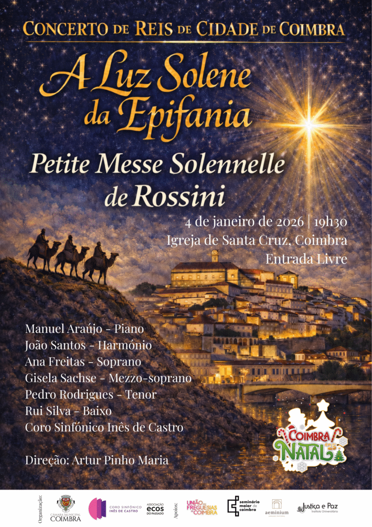 Organizado pelo Município de Coimbra e pela Associação Ecos do Passado, através do Coro Sinfónico Inês de Castro, o Concerto de Reis marca o encerramento do programa Coimbra Natal 2025, iniciativa municipal desenvolvida com o apoio de várias entidades.