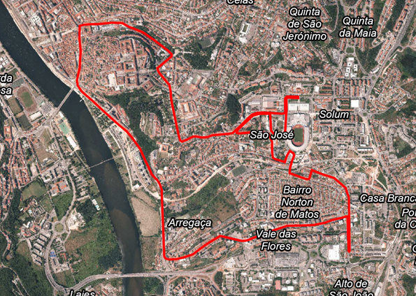 Após o encerramento da Rua do Brasil, no sentido Portagem – Zorro, depois da Avenida da Lousã segue pela Avenida Urbano Duarte e Avenida Mendes Silva, retomando o percurso no Alto de São João.