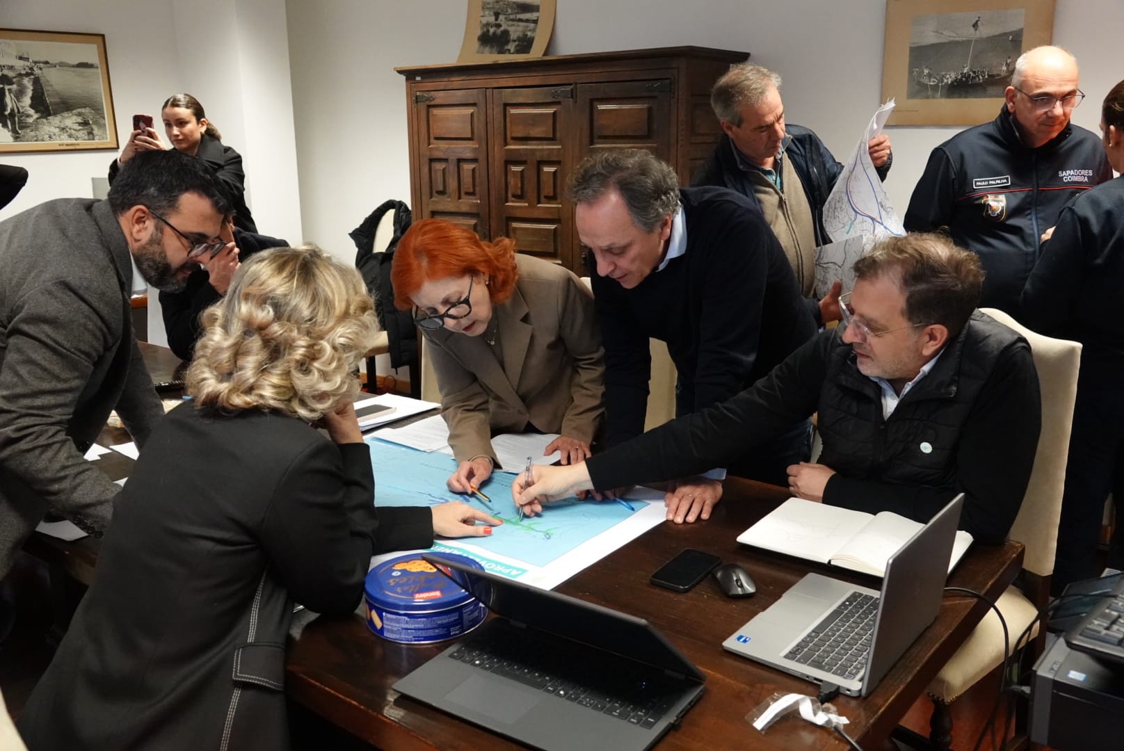 A comitiva reuniu nas instalações da APA – Administração da Região Hidrográfica do Centro, num encontro que contou com a presença da ministra do Ambiente, Maria Graça Carvalho, dos secretários de Estado da Proteção Civil e da Administração Local, Rui Rocha e Silvério Regalado respetivamente, da presidente da Câmara Municipal de Coimbra, Ana Abrunhosa, dos presidentes das Câmara Municipais de Montemor-o-Velho e Soure, José Veríssimo e Rui Fernandes respetivamente, e do presidente da APA, José Pimenta Machado.