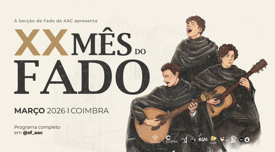 O XX Mês do Fado, iniciativa promovida pela Secção de Fado da Associação Académica de Coimbra com o apoio da Câmara Municipal de Coimbra, termina no próximo sábado, dia 28, no Convento São Francisco. Às 16h00, o Café-Concerto acolhe as “Conversas de Café”, subordinadas ao tema “Influências da música tradicional portuguesa na Canção de Coimbra – Coimbra como caldeirão de culturas”, com a participação de Manuel Marques Inácio, Jorge Cravo e Rui Pato, e entrada gratuita. Às 21h00, no Antiga Igreja, tem lugar o espetáculo “Canções do Nosso Tempo”, que assinala o lançamento do novo CD dos Grupos de Fados e Guitarradas da Secção de Fado da AAC. Os bilhetes estão disponíveis nos locais habituais (bilheteira do Convento São Francisco e Ticketline).