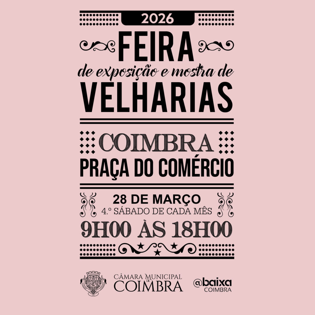 A Praça do Comércio acolhe, no próximo sábado, dia 28, entre as 9h00 e as 19h00, um conjunto de expositores que fazem da Feira de Velharias de Coimbra um ponto de encontro de apreciadores de antiguidades. Os visitantes podem encontrar utensílios domésticos e decorativos, peças de latoaria, joalharia, ourivesaria, arte sacra, livros, discos de vinil, selos postais e outras raridades, em boa parte, pertença de colecionadores. A iniciativa, registada mensalmente na agenda cultural de Coimbra, há mais de três décadas, transforma o espaço público num repositório de memórias, fomentando a compra e venda de objetos de coleção.