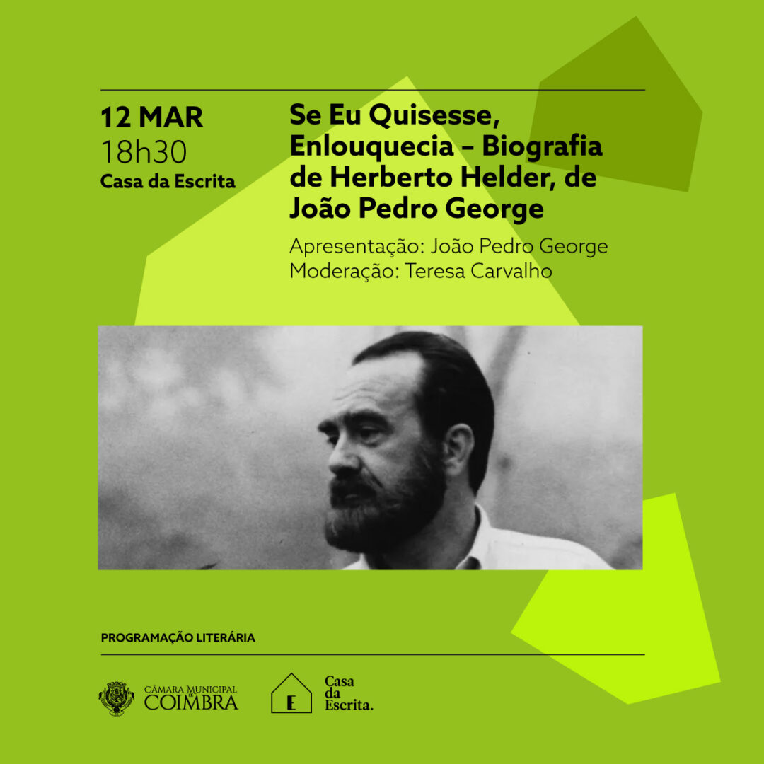 João Pedro George, sociólogo e investigador, autor do livro “Se Eu Quisesse, Enlouquecia – Biografia de Herberto Helder”, vai estar na Casa da Escrita, na quinta-feira, dia 12, às 18h30, para apresentar a sua obra, numa sessão moderada por Teresa Carvalho. A iniciativa, de acesso livre, está integrada no eixo de “Programação Literária” da nova vida da Casa da Escrita. A biografia, publicada dez anos após a morte de Herbert Helder, no âmbito da coleção “Biografias de Grandes Figuras da Cultura Portuguesa Contemporânea”, é editada pela Contraponto. Com recurso a cartas do próprio e a testemunhos inéditos de quem mais de perto com ele conviveu, João Pedro George apresenta, pela primeira vez, e com grande nitidez, o ser humano por detrás do poeta Herberto Helder.