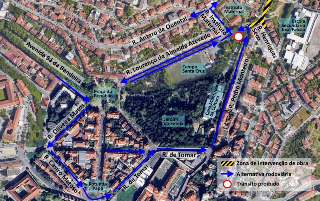 Assim, durante este período, deixa de ser possível aceder à Rua Pedro Monteiro a partir da Rua Lourenço de Almeida Azevedo. A alternativa para quem vem da Avenida Sá da Bandeira é realizada pela Rua de Oliveira Matos, Rua Castro Matoso e Rua de Tomar. O acesso ao parque de estacionamento da Casa Municipal da Cultura mantém-se. No sentido contrário não haverá alteração.